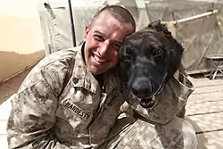 A study conducted by J.S.J Odendaal in 2003 showed that when humans pet dogs, their bodies release oxytocin, a hormone associated with not only happiness, but bonding and affection as well.[10] According to the social support theory, animals are a source of social support and companionship, which are necessary for well-being.[11] Canines' social impact on humans is especially significant for those who tend to be more isolated, such as children with no siblings[12] or elderly persons.[13] In this view, the animal is part of our community and is an important determinant for psychological well-being. According to self psychology, an animal can be a "self-object" that gives a sense of cohesion, support, or sustenance to a person's sense of self. Self-psychology explains why some animals are so crucial to a person's sense of self and well-being.[14] Dog companionship often gives people a sense of purpose by causing them to develop a daily routine and giving them something to look forward to each day.[1] Studies also show owning a dog reduces stress,[15] alleviates anxiety,[16] and even can prolong a human's lifespan.[17] Despite the positive relationship, there are instances where dogs have turned on their owner or other humans.[18] The reasons for a dog to break the normally positive social bond are varied and include a background of abuse against the animal, inherent psychological issues of the dog, and where the dog may have been trained for heightened aggression. But trained aggression is virtually always by professional handlers of special dogs.