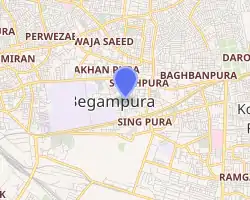 This structure houses the tomb of Sharf-un-Nisa Begam, sister of Nawab Zakariya Khan, the governor of Lahore province during the reign of Mughal emperor Muhammad Shah Rangeela,[1] built in the eighteenth century.[1] It is located near to the north of the Tomb of Dai Anga, and east of the Grand Trunk Road in the Begampura neighbourhood of Lahore, Pakistan.