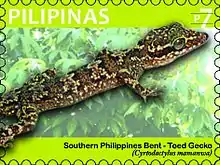 Cyrtodactylus mamanwa is a species of gecko endemic to the Philippines. It was identified in 2010 from a sample collected in 2007 on the Dinagat Island and named after the Mamanwa indigenous group.[2] It is also found on Siargao and nearby islands. Adults reach a total body length of ca. 19 cm. This gecko feeds mostly on insects and spends most of its life on trees. Females lay two brittle eggs under barks of trees or inside tree cavities.[3]
