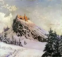 Czorsztyn castle, 1911 oil painting by Michał Gorstkin-Wywiórski at the Lviv National Art Gallery