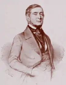 Démosthène Ollivier was born in Toulon, Var on 25 February 1799.[1] He entered commerce at a young age, and headed a trading house in Marseille dealing in fabrics.[2] Démosthène Ollivier held democratic views, and was opposed to the Bourbon Restoration (1814–30).[1] In 1822 Ollivier was denounced for having taken part in a plot against the monarchy, was arrested and condemned to six months in prison and a fine.[3] Ollivier married Marie Geneviève Claire Perie. Their son Émile Ollivier was born in Marseille on 8 July 1825.[4] Démosthène Ollivier was against the monarchy of Louis Philippe I (r, 1830–48).[1]