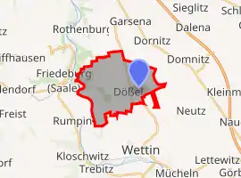 Dößel is a former municipality in the Saalekreis district, Saxony-Anhalt, Germany. On 1 July 2008, it was absorbed by the town Wettin. In January 2011 it became part of the town Wettin-Löbejün.[1]