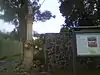 | Gravestone of local priest Anton Moyš / Náhrobok miestneho katolíckeho farára Moyša | Dúbravka Cemetery - Strmé sady Street | Anton Moyš's gravestone is grey and rectangular with the words: "Ladislav Moyš / 8.4.1867-13.3.1950 / Roman Catholic priest / Co-founder and director of the Slovak Radio / R.I.P." engraved in golden letters. | |