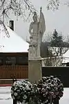 | Statue of Saint Wendelin / Socha sv. Vendelína | Vendelínska Street, next to the fence of ZŠ Dolinského | The baroque statue from the end of the 18th century depicts Saint Wendelin, the patron saint of shepherds in his standard iconography including cattle at his feet and a shepherd's crook in his hand. The pedestal is in the form of a rectangular pillar. It was reconstructed in 1928 and again 1993. The monument was originally in an unknown place, in the year 1970 it was moved into the area of the local rectory and in 1993 it was reconstructed in moved into its current place. In the past the pedestal consisted of three parts, a table containing engraved text was just underneath the statue and the monument used to be protected by a small metal roof.[2] | |