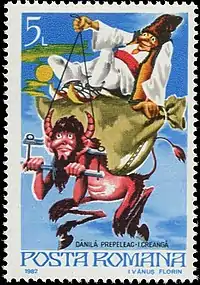 "Dănilă Prepeleac" (Romanian pronunciation: [dəˈnilə prepeˈle̯ak]; occasionally translated as "Danilo the Pole", "Dănilă Haystack-Peg" or "Danillo Nonsuch") is an 1876 fantasy short story and fairy tale by Romanian author Ion Creangă, with a theme echoing influences from local folklore. The narrative is structured around two accounts. In the first part, the eponymous peasant hero, shown to be poor, lazy and idiotic, exposes his incompetence and lack of foresight by becoming in involved in a cycle of barters, which results in him exchanging a pair of oxen for an empty bag. The second portion of the text shows Dănilă's adventures inside a forest, where he decides to become a hermit, unwitting that the land is inhabited by an army of devils. Confronted by the latter, he survives a set of challenges by outsmarting his adversaries, and, although losing one eye to demonic curses, he becomes the recipient of a large fortune awarded by Satan himself.
