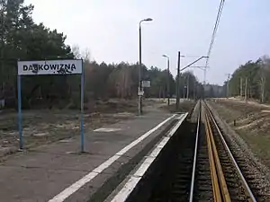 Dąbkowizna railway station is a railway station in Wólka Radzymińska, Legionowo, Poland. It is served by Koleje Mazowieckie.