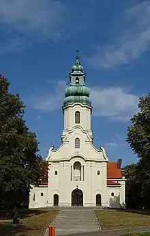 The village has a neo-baroque Roman Catholic church (the Church of the Assumption of the Blessed Virgin Mary), built in 1925 in place of the former wooden church. The church houses a picture of the Madonna and Child, to which miracles have long been attributed (the original picture was displayed on an oak tree, and was said to glow in the dark), making the village and its church a popular destination for pilgrims since the 17th century. This tradition continues today, particularly in the form of an annual fair and mass pilgrimage in September. This takes place on the weekend of the first Sunday after 8 September, which is celebrated as the birthday of the Virgin Mary.