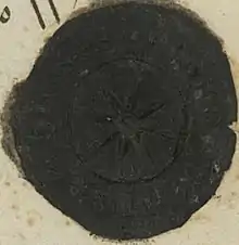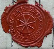 Dědice never received the sign privilege. For this reason, the preserved seals are studied when examining the history of the origin and development of the coat of arms of Dědice. On the seal of the bishop's part of Dědice near the Vyškov estate with a diameter of 26 mm, which was used in 1589, there is a shield with an eight-pointed star in the sealing field. The description separated from the sealing field by a line, separated on the outside by a wreath, is indistinct.[54]