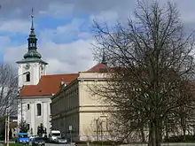 The rich past of Dědice is evidenced mainly by the local baroque church of the Holy Trinity, built in 1753 on the site of an older Gothic church from the 14th century, which was destroyed in a large fire. The oldest bell of the church of Dědice, which was cast by Vyškov bell-maker Filip Konwarz, dates from 1556.[33] The temple was almost destroyed in 1731 after lightning struck it and set it on fire.[34] At that time, the parishioners, together with the then pastor P. Karel Leopold Felix (1727–1750), immediately began repairs and raised the tower, which has been preserved. In 1750, the tower was demolished because the parishioners decided to build a completely new church.