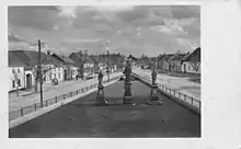 Until the turn of the 20th and 21st centuries, the historical part of Dědice has been preserved in the original layout of the floor plan and with the original material structure, with some exceptions.[18] Thus, a number of houses on Dědická Street no longer stand on Svobody Square in places where, for example, there is a public transport stop today. The appearance of the square was modified, for example, in the 1980s, when the monument to Klement Gottwald was moved from its original location, and even later. After the Velvet Revolution, the statue of Klement Gottwald from 1956 (by Vincenc Havel of Opava) was removed.[40][41]