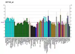 Male and female animals underwent a standardized phenotypic screen to determine the effects of deletion.[18][25] Twenty three tests were carried out on mutant mice and eight significant abnormalities were observed.[18] Homozygous mutant animals had a decreased body weight, grip strength and bone mineral content; a kinked tail, abnormal indirect calorimetry and femur/tibia morphology. Females also had an increased blood urea nitrogen level while males had a decreased leukocyte cell number.[18]