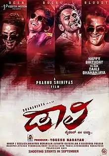 Daali is an upcoming Indian Kannada-language Gangster action drama film[1] written and directed by Prabhu Srinivas[2] and starring Dhananjay and Rachita Ram. The score and soundtrack of the film is composed by Anoop Seelin.[3][4]