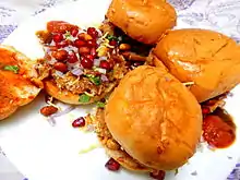 | Main ingredients | Potatoes, masala, pav (burger bun), Pomegranate, peanuts |