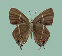 - Hayashi, Hisakazu (1984). "Zwei neue Lycaeniden-Arten von den Philippinen (Lep.: Lycaenidae)". Entomologische Zeitschrift. 94 (21): 311–314.
