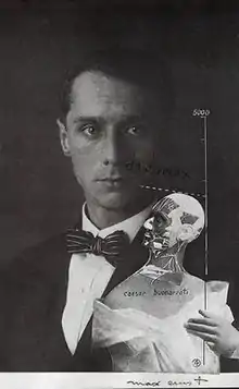 The volume was advertised in Duchamp's and Man Ray's journal New York Dada in 1921: "Order from the publishing house 'La Sirène' 7 rue Pasquier, Paris, DADAGLOBE, the work of dadas from all over the world […] The incalculable number of pages of reproductions and of text is a guarantee of the success of the book."[4] When André Breton, later founder of Surrealism, saw the intended contents of the book, he remarked: "The grand album 'Dadaglobe' […] will soon appear. […] After the publication of this volume it will be impossible to contest Dada's artistic value."[5]