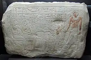 Dagi was an ancient Egyptian local official who lived in the First Intermediate Period, around 2100 BC. From his preserved titles and objects it is very likely that he was local governor at Qus, a town in Upper Egypt. Dagi is mainly known from the stela of Hetepi, who was his father. On this stela Dagi bears the titles sole friend and inspector of priests. Especially the latter title indicates that he was a main local authority at a certain place. From other sources it is known that these local priests also had responsibilities beyond religious matters. They were basically local governors. The stela of his father Hetepi is today in the National Archaeological Museum of Florence.[1] It was bought by Ernesto Schiaparelli in 1884/1885. Later research has shown that the stela most likely comes from Naqada where there was a cemetery of the First Intermediate Period that served Qus.[2] Dagi might be also mentioned on the stela of the overseer of clothes Hasi, who said that he served the overseer of priests Dagi.[3] As the titles of both Dagis are slightly different, there is no hard evidence that they are identical.