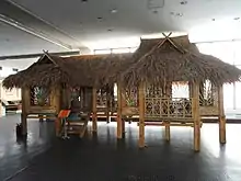The officer’s bamboo house is spacious and bright. It adopts the style of Western “gothic architecture”, the shape of the house is square, and the roof is shaped like a pyramid. The entire bamboo house is supported by 20 to 24 huge wooden stakes, which are built on stone. The internal shape is simple. The main room in the middle is the guest room. The living room is usually divided into two or three rooms for the owner's wife and children. The room of the officer's bamboo house is about 30 square meters and can accommodate about 20 people. Compared with the official bamboo house, the bamboo house of the people is quite narrow. The roof is covered with couch grass. The wooden pile cannot be built on stone, and figures cannot be carved on the wooden pile.[6]
