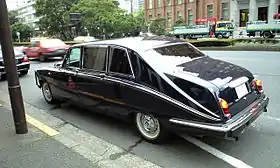 The limousines have also been used to transport representatives of Queen Elizabeth II worldwide, as well as diplomatic missions in London, including governors of Hong Kong, the High Commissioner of New Zealand,[7] the Governor of Tasmania,[8] and the Governor of Guernsey.[9] A Daimler Limousine still serves the Lieutenant Governor of Jersey. Diplomatic missions that have used the DS420 include Jordan,[10] Oman,[11] Portugal, and Spain.[12] The DS420 was also the choice of other governments who were looking for an appropriate car to transport dignitaries during state visits or for use by their own officials on formal occasions, such governments including those of Australia[13] and New Zealand.[14]