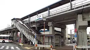 The station has one elevated side platform serving a single bi-directional track, with the station building located underneath. The station building has automated ticket machines, TOICA automated turnstiles and is staffed. There is a bus stop nearby, served by Meitetsu with direct service to Higashi-Okazaki station.