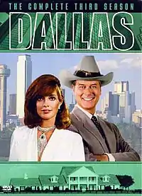 Season three of Dallas was released by Warner Bros. Home Video, on a Region 1 DVD box set of five double-sided DVDs, on August 9, 2005. In addition to the 25 episodes, it also includes commentaries by Patrick Duffy and Linda Gray, and the featurette "Who Shot J.R.?: The Dallas Phenomenon".[1]