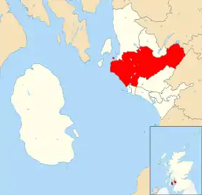 Dalry and West Kilbride was one of ten wards used to elect members of the North Ayrshire council between 2007 and 2022. Covering the small towns of West Kilbride just inland from the Firth of Clyde coast and Dalry approximately 6 miles (9.7 km) further east, plus its rural hinterland, it elected three councillors.[2][3] It was unaffected by a national boundary review prior to the 2017 local elections, but after the introduction of the Islands (Scotland) Act 2018, North Ayrshire's wards were re-organised for the 2022 election: West Kilbride was re-assigned to the North Coast ward, and Dalry going to the Kilbirnie and Beith ward which was consequently re-named Garnock Valley to reflect its wider scope (Dalry is closer to Beith and Kilbirnie both geographically and socially), both entities now electing five councillors.[4][5]