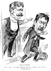 In 1884 the American producer Augustin Daly brought his company to London – the first time an entire American company had performed in the West End.[1] The company, which included Ada Rehan, Otis Skinner, Mrs G. H. Gilbert and James Lewis, presented a season of comedies, old and new.[1] The season was well received, and Daly brought his company to London again four times between 1885 and 1891.[2] They played at the Lyceum, Gaiety and other theatres, but the enthusiasm of the press and public suggested that Daly should have a permanent London base.[2] The London impresario George Edwardes secured a lease of a site owned by Lord Salisbury, bounded by Lisle Street, Ryder's Court and Cranbourne Street,[2] and raised the money – a little under £40,000 – to build a theatre.[3] The architect was Spencer Chadwick, who was assisted by C. J. Phipps. The theatre was one of the first in London to be built using the cantilever system, and the Italian Renaissance and neo-classical facade was more elaborate than that of most London theatres. Likewise, the entrance hall and foyer were elaborately executed and decorated. The auditorium had a seating capacity of over 1,200 in three tiers.[2]