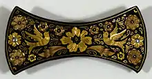 The Zuloaga family workshop at Eibar was the centre of Spanish damascening from the 19th century to the Spanish Civil War.[1][2] Eusebio Zuloaga was a gunsmith and director of the Spanish Royal Armoury.[3] A metalwork prodigy, Zuloaga undertook to restore damaged items in the armoury, and in the process studied and replicated decorative techniques of centuries past. This led to the establishment of Spain's damascene industry.[4] Eusebio's eldest son Plácido Zuloaga eventually took over the workshop and directed its work away from armaments to the production of intricate decorative art works.[3] In the process, he mastered and improved the techniques of damascening[5] and trained more than two hundred artists.[1] His works were exhibited at many national and international fairs, winning multiple gold and silver medals[1] and extremely positive reviews from critics.[6] The British-Iranian scholar and collector Nasser D. Khalili has assembled, published, and exhibited more than a hundred items of Spanish damascened metalwork from this period, forming the Khalili Collection of Spanish Damascene Metalwork.[7]