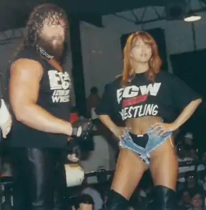 Due to his relationship with Heyman, Kane later ended up working for him in Extreme Championship Wrestling, where he was best known for managing The Headhunters as well forming a tag team with Devon Storm. Together, Kane and Storm successfully defeated the Dudley Boyz (Buh Buh Ray and D-Von) by disqualification (a rare occurrence in ECW) at A Matter of Respect[4] and later feuded with The Bad Crew, a tag team he had formerly managed.[5]