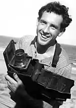 Damien Parer was born at Malvern in Melbourne, the seventh child of John Arthur Parer, a Spanish-Catalan-born hotel manager on King Island and his wife Teresa, the daughter of JP Carolin a Tasmanian and Mary Corcoran from Tipperary, Ireland. In 1923, he and his brother Adrian were sent as boarders to St Stanislaus' College in Bathurst and St Kevin's College, Melbourne.[1] He joined the school's camera club, and decided that he wanted to be a photographer, rather than a priest. However, finding a job as a photographer in depression-era Australia proved difficult, so he resumed his education at St Kevin's in East Melbourne. While at this school he won a prize in a photographic competition run by the Melbourne newspaper The Argus, and used the money to buy a Graflex camera used by professional photographers.