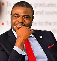 Professor Damilola Sunday Olawuyi, SAN, FCIArb, is an international jurist, professor of law, arbitrator, author and policy consultant, with expertise in petroleum, mining, energy and environmental law.[1] He is the Deputy Vice Chancellor of Afe Babalola University, Ado Ekiti, Nigeria. Professor Olawuyi was promoted to the rank of Full Professor of Law at the age of 32 years, becoming one of the youngest full professors of law in Nigerian history.[2][3] He became a Senior Advocate of Nigeria (Queen's Counsel eqv.) in 2020, aged thirty-seven, becoming the youngest academic ever elevated to the rank of a senior advocate of Nigeria.[4][5][6]