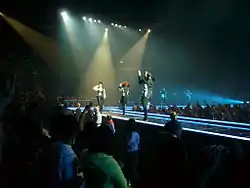 Jackson had initially confirmed a world tour in support of Damita Jo, stating: "I want to do something different, I have a few ideas and hopefully the fans will embrace it."[103] The first date was planned for September 17, 2004. It was initially postponed due to Jackson focusing on the presidential election occurring within the same time period, commenting "we desperately need a Democrat as president"; as well as blacklisting from major companies regarding fines following Jackson's Super Bowl halftime show incident.[104] After the election period, Jackson was approached to record her next studio album 20 Y.O. and postponed all plans for touring. One of the tour's several planned opening acts was Mario Winans, known for the hit "I Don't Wanna Know" with Enya.[105] Janet would later perform songs from Damita Jo during her State of the World Tour, such as "Spending Time with You" and "Island Life".