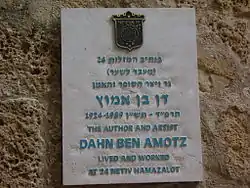 Memorial plaque on Dan Ben-Amotz house in Jaffa