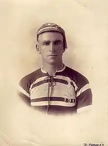 Dan Frawley (1882–1967) was a pioneer Australian rugby league footballer, a national representative player. He played his career as a wing with the Eastern Suburbs club in Sydney and is considered one of the nation's finest footballers of the 20th century.[1] A fast and agile wing, with an ability to effortlessly change direction, Frawley was at club and representative levels generally positioned on the outside of rugby league Immortal Dally Messenger, creating a formidable combination. He was a noted speedster who, on the 1908–09 Kangaroo tour of Great Britain, was acclaimed as the "100 yards champion" of the squad.