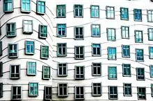 The famous dancers Fred Astaire and Ginger Rogers are represented in the structure. A tower made of rock is used to represent Fred. This tower also includes a metal head. A tower made of glass is used to represent Ginger.[5]