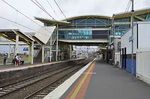 The station was again rebuilt in 1994/95, as part of the Cranbourne electrification project.[5] The rebuild included the demolition of the former Southern Aurora Hotel (completed in May 1993),[6] the removal of the former wooden station building (completed in April 1994),[6] and filling in the former pedestrian underpass at the Down end of the station.[6] The new station was opened in March 1995 by former Prime Minister Paul Keating.[7][8]