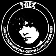 "Dandy in the Underworld" was released by EMI Records as a single from Dandy in the Underworld on 30 May 1977, over two months after the release of the album. The two B-sides, "Groove a Little" and "Tame My Tiger", were also written and produced by Bolan. Bolan described the latter track as a "New wave song".[8] The first 25,000 copies of the single were to be issued with a picture sleeve.[9]