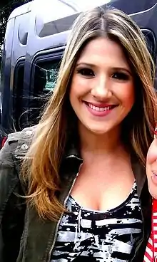 Daniella Maria Giusti (born November 12, 1981) is a Brazilian comedian, actress, screenwriter, and television presenter. She is best known for being a cast member of the APCA award winner show Comédia MTV[2] as well as the host, alongside the actor Bento Ribeiro, of Furo MTV, a show similar to Saturday Night Live's Weekend Update. She was married to the comedian Marcelo Adnet. They got divorced in 2017.[3] On March 18, 2013, Calabresa made her official debut on the weekly show Custe o Que Custar (a Brazilian version of the Argentine comedic news program Caiga Quien Caiga) aired on Band and TBS.[4][5]