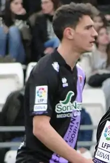 Calvo contributed 41 appearances in the 2019–20 season, as his team achieved promotion in the play-offs.[9] He made his La Liga debut on 26 September 2020, starting in a 0–3 home loss against Real Sociedad.[10] He scored his first goal in the league the following 20 February, the only in a victory over SD Eibar also at the Estadio Manuel Martínez Valero.[11]