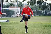 Evans was drafted in the third round (22nd overall) of the 2017 NWSL College Draft by Orlando Pride.[1] She made her first appearance for the club as a substitute against the Portland Thorns in the opening game of the season.[2] One week later, during Orlando Pride's first home game at Orlando City Stadium, Evans came off the bench to score her first professional goal, an 87th-minute equalizer in a 1–1 draw against Washington Spirit. The strike was voted NWSL Goal of the Week.