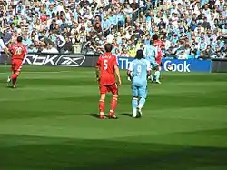 Agger scored his second goal for the club in a Football League Cup away game against Birmingham City with a volley from close range during the seven minutes of first-half stoppage time.[12] His third was against Arsenal, scoring a header in a 4–1 victory played on 31 March 2007.[13] In the first semi-final of the 2006–07 Champions League, Agger received some criticism as Liverpool lost to Chelsea 1–0, after Chelsea striker Didier Drogba managed to dribble past him before making the assist to win the game.[14] In the second leg of the semi-finals, Agger answered his critics by scoring another curler from a smartly-taken Steven Gerrard free-kick from just outside the penalty area, and helping Liverpool keep a clean sheet as the team beat Chelsea 1–0 on 1 May 2007.[14] He went on to play in the 2007 UEFA Champions League Final which Liverpool lost 2–1 to Milan.[15]