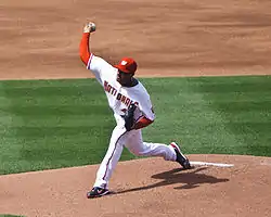 Daniel Alberto Cabrera Cruz (born May 28, 1981) is a Dominican former professional baseball right-handed starting pitcher. He has played in Major League Baseball (MLB) for the Baltimore Orioles, Washington Nationals and Arizona Diamondbacks and in Nippon Professional Baseball (NPB) for the Chunichi Dragons. He is a tall pitcher, standing at 6' 7" and 225 lb.