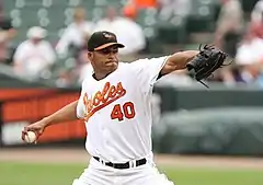 ![]() Cabrera pitching for the Orioles in 2008 | |