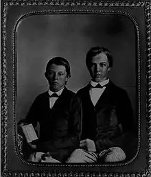 His first son George Hathaway Dole (1842–1912) married Clara Maria Rowell (1847–1916),[8] daughter of missionary Revered George Berkeley Rowell (1815–1884) of Waiʻoli on August 17, 1867[9] and had 13 children.[10] George became a soldier in the Hawaiian Royal Guard in 1874, and was appointed to the House of Nobles in the legislature of the Hawaiian Kingdom representing Kauaʻi in the 1887 session.[11] In the 1870s he traveled to Salt Lake City, Utah and met Brigham Young. In 1890 George and his family moved to Riverside, California.[12]