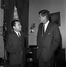 Daniel Ken Inouye (/iːˈnoʊˌeɪ/ ee-NOH-ay;,[1] September 7, 1924 – December 17, 2012) was an American lawyer and politician who served as a United States senator from Hawaii from 1963 until his death in 2012. Beginning in 1959, he was the first U.S. representative for the State of Hawaii. A member of the Democratic Party, he also served as the president pro tempore of the United States Senate from 2010 until his death.[2] Inouye was the highest-ranking Asian-American politician in U.S. history,[3] until Kamala Harris became vice president in 2021.[4] Inouye also chaired various Senate Committees, including those on Intelligence, Indian Affairs, Commerce, and Appropriations.