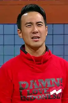 Daniel Mananta (born in Jakarta, Indonesia on August 14, 1981) is an Indonesian actor, presenter and television host of mixed Chinese and Javanese descent --sometimes known as VJ Daniel Mananta. He is an Indonesian entertainer whose name emerged after winning the 2003 MTV Indonesia VJ Hunt. He has now established himself as an entertainer as well as a young entrepreneur.