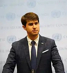 He serves as political advisor to the Sovereign Order of Malta Observer Mission to the United Nations. He also serves as Youth Advisor to the Ambassador and Permanent Representative of Slovakia to the United Nations in New York.[18][19] In 2021, the International Human Rights Foundation appointed him as High Representative for Youth.[20] According to the Foundation, he obtained this position "due to his contributions and achievements in the thematic area of the Youth Agenda of the United Nations,[21] and for his work promoting the fulfillment of the Sustainable Development Goals".[22] He has also worked directly with several diplomatic missions, in Latin America and Africa, as in Haiti and Lesotho, both from New York and in Europe.[23]