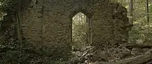 ![]() The Saint Stanislaus Kostka Catholic Church, one of the few structures left in the town |