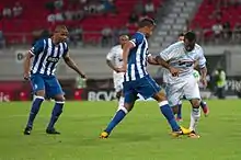 In early January 2012, following the 2011 FIFA Club World Cup, Danilo signed for Portuguese club Porto on a contract lasting until June 2016 following a €13 million transfer fee paid by Porto.[9] His contract included a €50 million release clause.[10][11] He initially played understudy to Cristian Săpunaru, but soon became first choice, with compatriot Alex Sandro – who signed at the same time – featuring on the other defensive wing as the Vítor Pereira-led team won back-to-back Primeira Liga titles.[12]