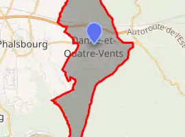 Danne-et-Quatre-Vents (French pronunciation: [dan‿e.katʁ.vɑ̃]; German: Dann und Vierwinden) is a commune in the Moselle department in Grand Est in north-eastern France.