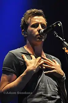 Daniel Alan David Jones[2] (born 12 March 1986[3]) is an English singer-songwriter and musician who is one of the lead vocalists and the lead guitarist for pop-rock band McFly. Jones's fellow band members are Tom Fletcher (rhythm guitarist and vocals), Dougie Poynter (bass and vocals), and Harry Judd (drums). Jones is married to former Miss England, Georgia Horsley.